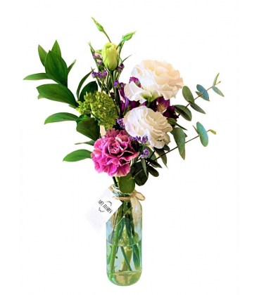 Mini Arranjo de flores do campo em garrafa de vidro. Elegância e delicadeza que vão encher de alegria o destinatário.